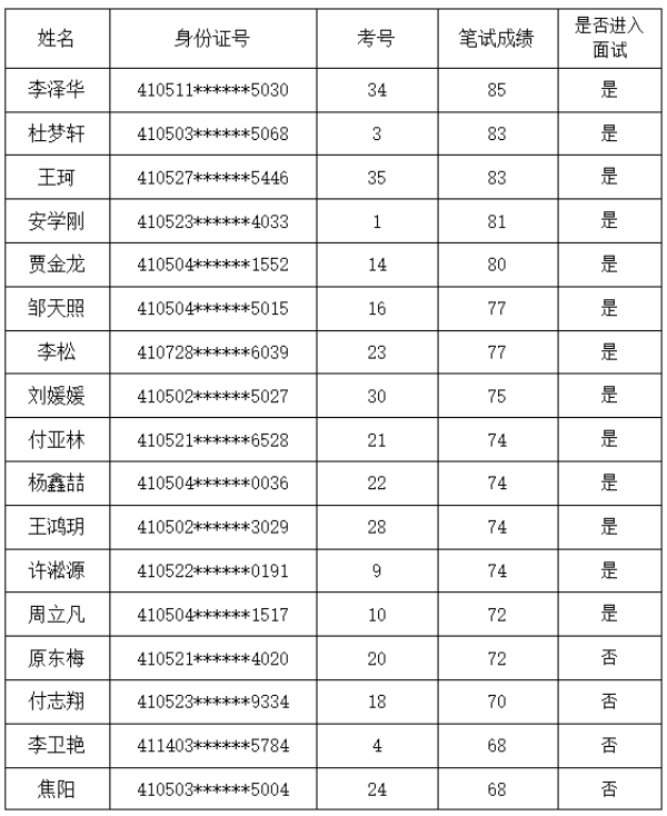 根據(jù)《安陽(yáng)經(jīng)濟(jì)開(kāi)發(fā)集團(tuán)有限公司下屬子公司工作人員招聘公告》的考試規(guī)則,現(xiàn)將筆試成績(jī)進(jìn)行公示。